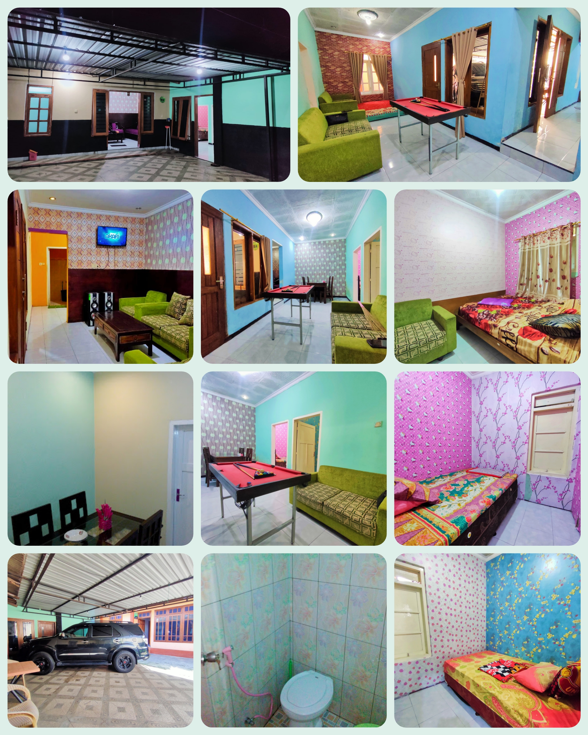 * Free Teh, Kopi, Mie Instan * 3 Kamar Tidur, ekstrabed ada * Kamar Mandi Air Hangat * Dapur Set * Garasi Mobil